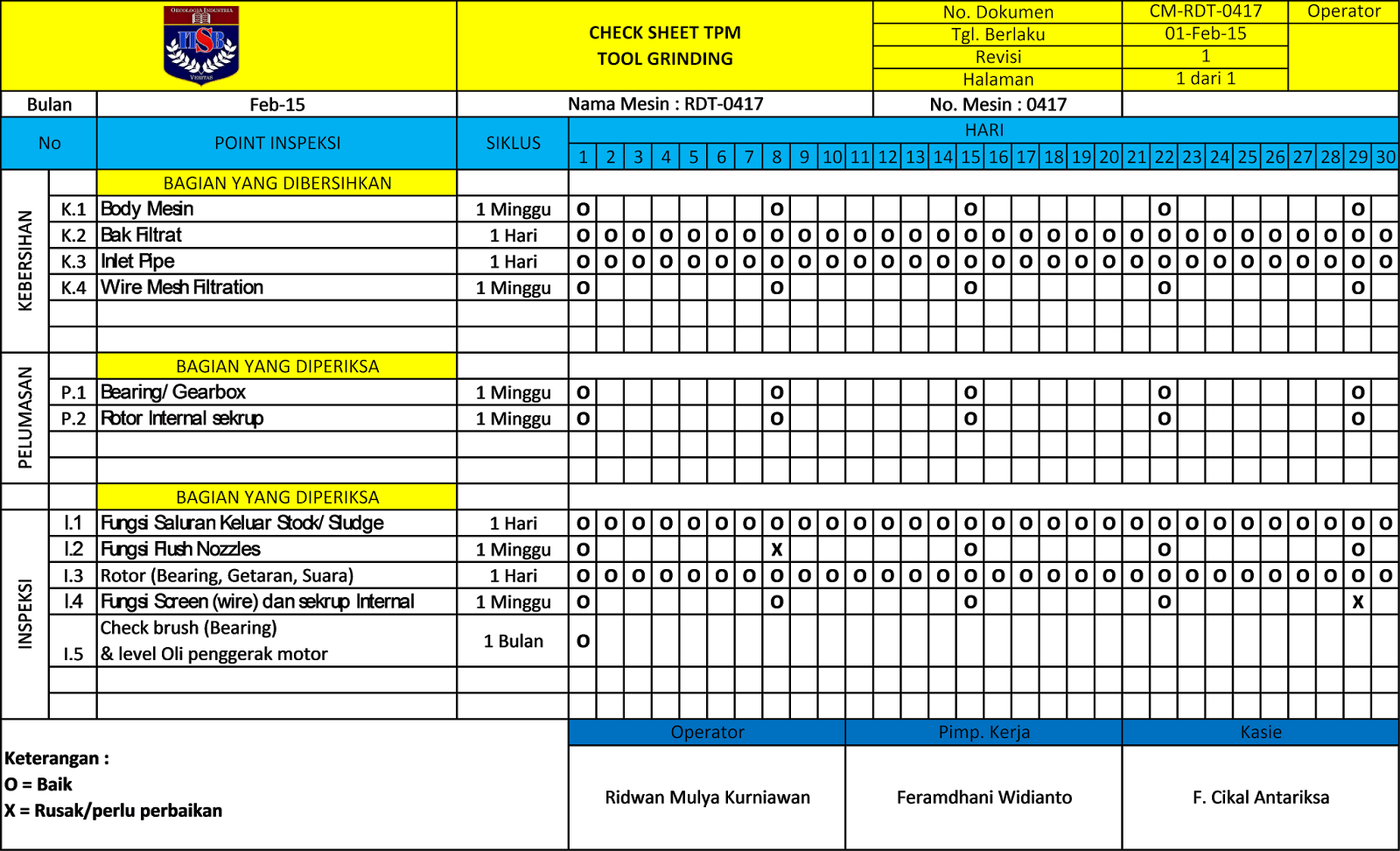 Contoh Jadwal Preventive Maintenance